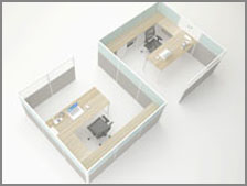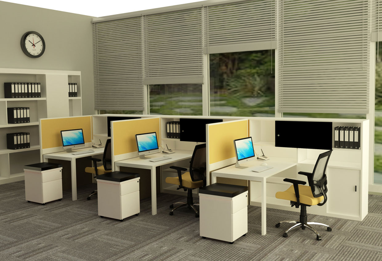 Its sleek panel frame provides a clean form, fulfilling the needs for creative space planning without compromising on the concealed wire management capabilities. Integrated vertical raceway allows cables to be concealed within the panels while the horizontal raceway above the table top provides easy access to the sockets.